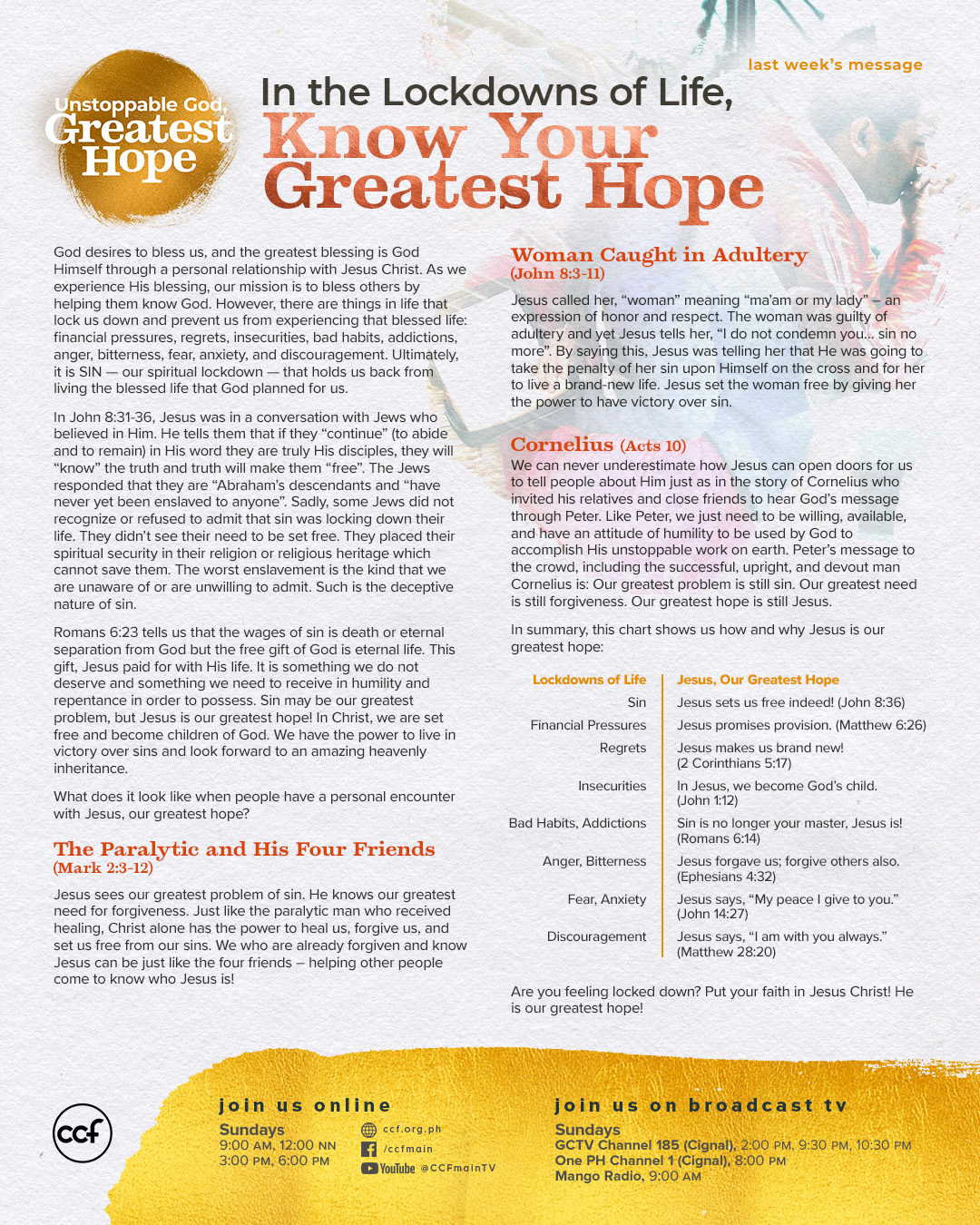 Unstoppable God, Greatest Hope